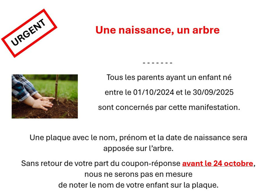 Une plaque avec le nom, prénom et la date de naissance sera apposée sur l’arbre.