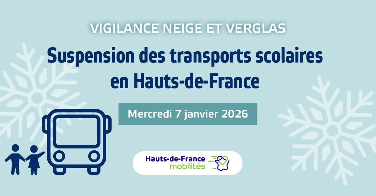 🚌 La Région Hauts-de-France informe également la suspension totale des transports scolaires (y compris par petit véhicule) et des lignes régulières par autocar de son réseau Hauts-de-France mobilités sur l’ensemble du territoire.