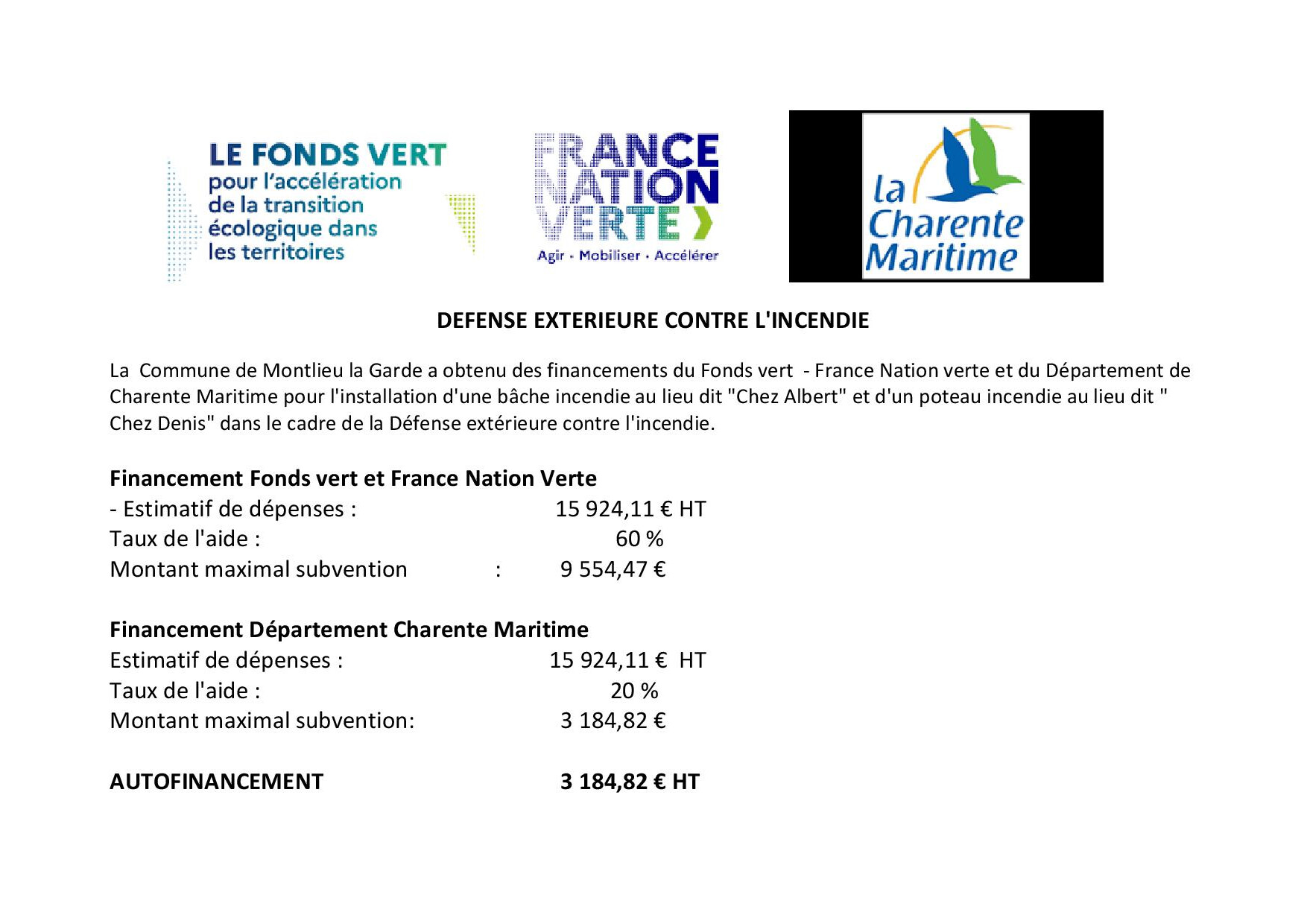 Pour la Commune de Montlieu la Garde , les travaux connexes sont des créations de pistes forestières, de chemins forestiers et d'un point d'eau.
