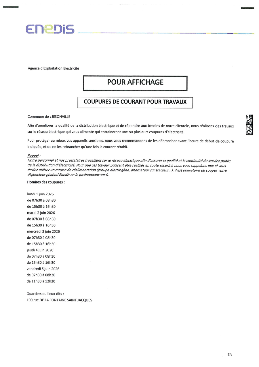 Ci-joint le courrier d'ENEDIS avec les dates et heures de coupure