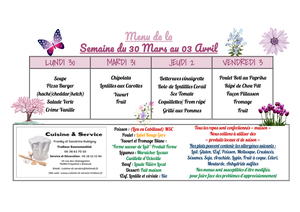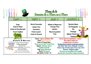 Veuillez trouver ci-joint les nouveaux menus de la cantine pour le mois de mars.