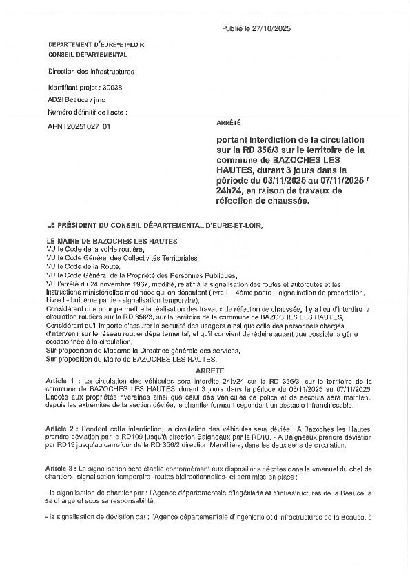 Depuis le 29/10, la Préfecture d'Eure-et-Loir a placé le département en risque "élevé"