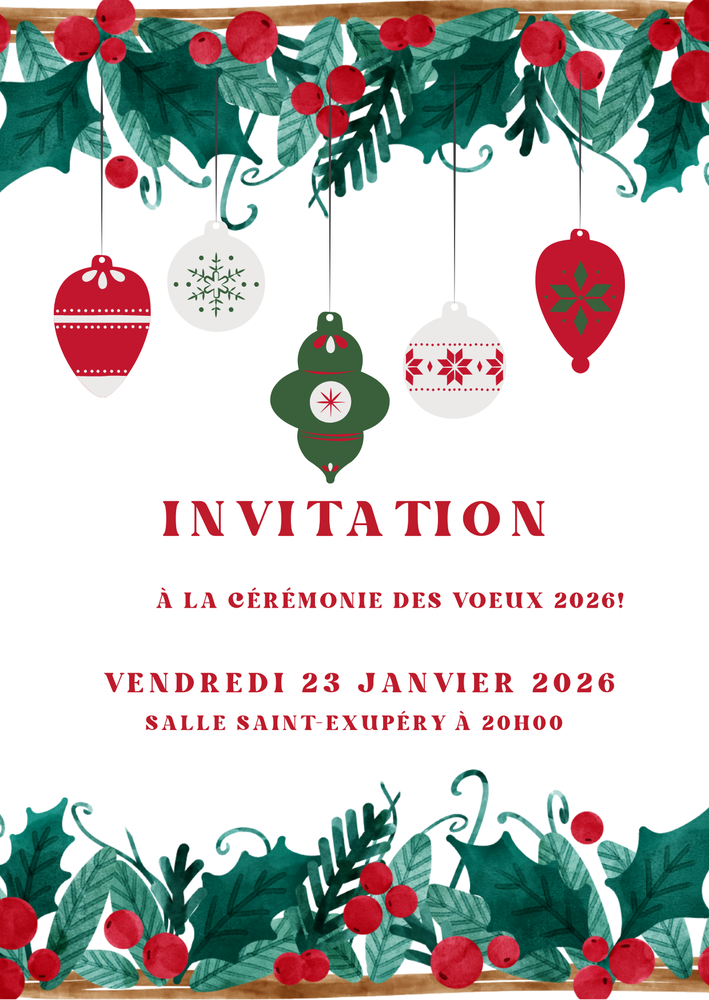 🎉 Nous avons le plaisir de vous inviter à la cérémonie des vœux ! Rejoignez nous pour partager un moment chaleureux et découvrir les projets de l'année à venir. Venez nombreux !