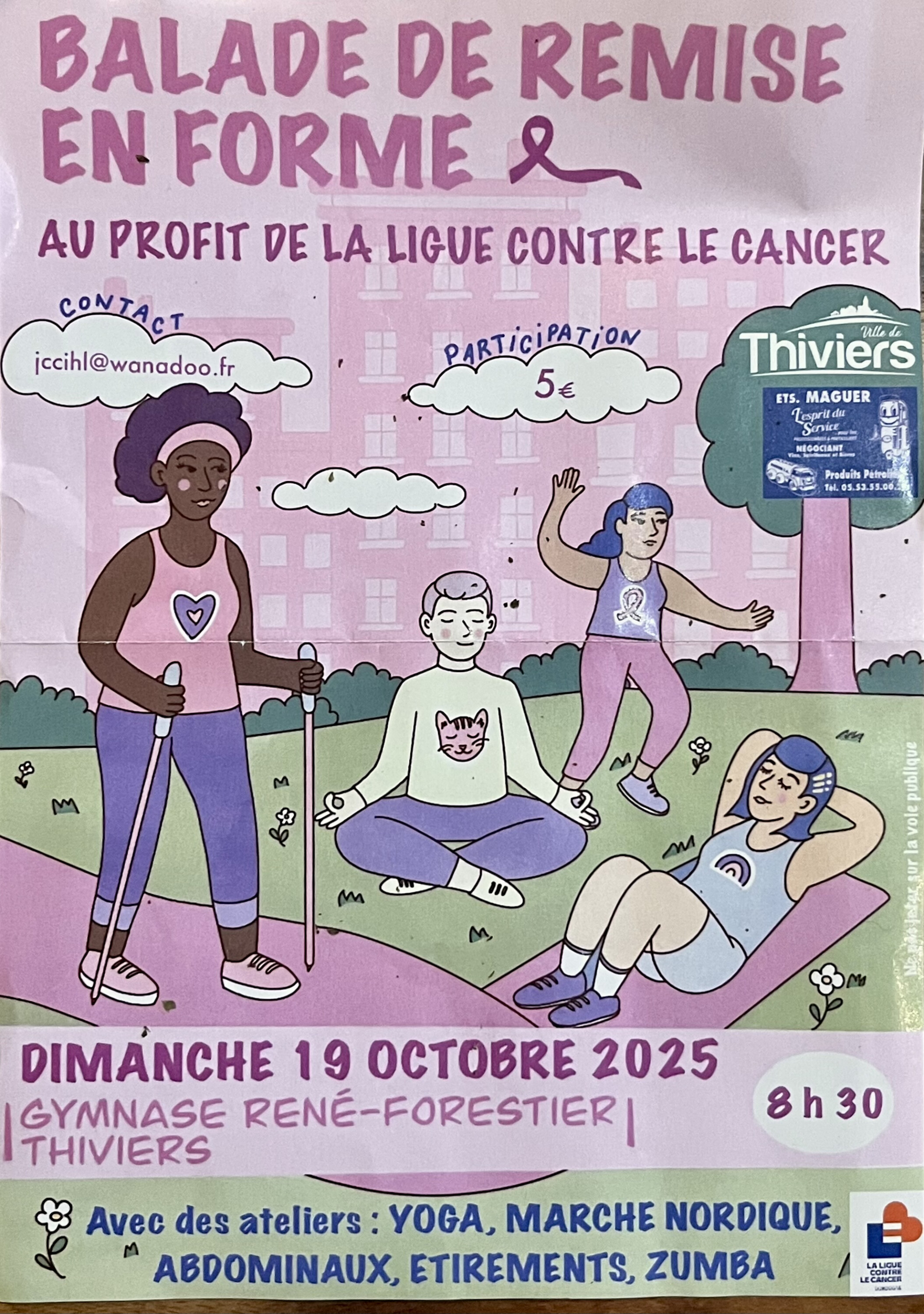 La commune de Nantheuil soutient toutes les manifestations organisées dans le cadre d’Octobre Rose, à l’initiative et/ou au profit de la Ligue contre le Cancer.