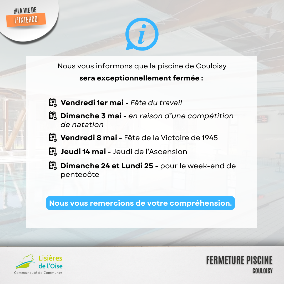📢 INFORMATION – FERMETURE EXCEPTIONNELLE DE LA PISCINE