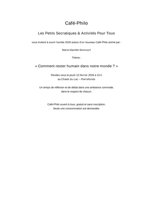 Le 2ème mardi après-midi de chaque mois de 14h30 à 16h30,