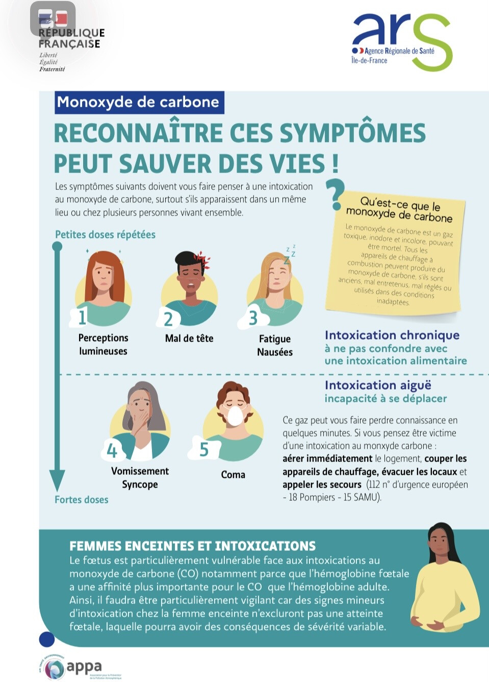 Dans le cadre de l’épisode de grand froid, une vigilance accrue concernant le risque d’intoxications au monoxyde de carbone (CO) est nécessaire.