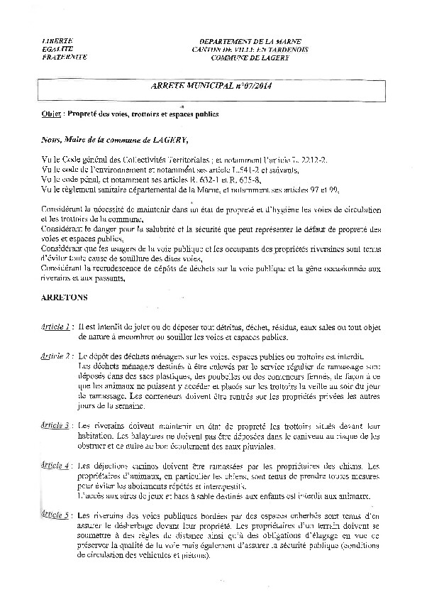 Propreté des voies, trottoirs et espaces publics
