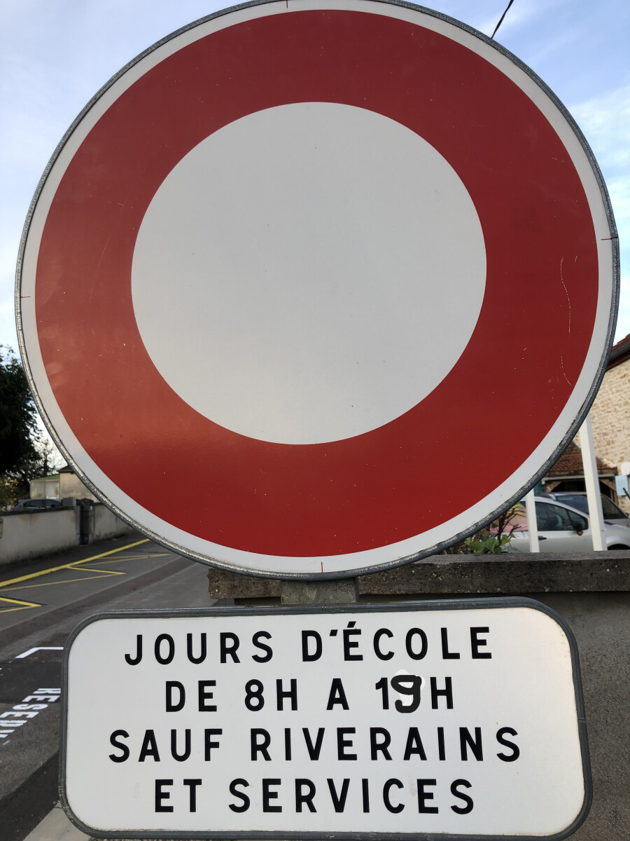 est interdite à la circulation dans les 2 sens à tous les véhicules motorisés (sauf car scolaire et riverains),