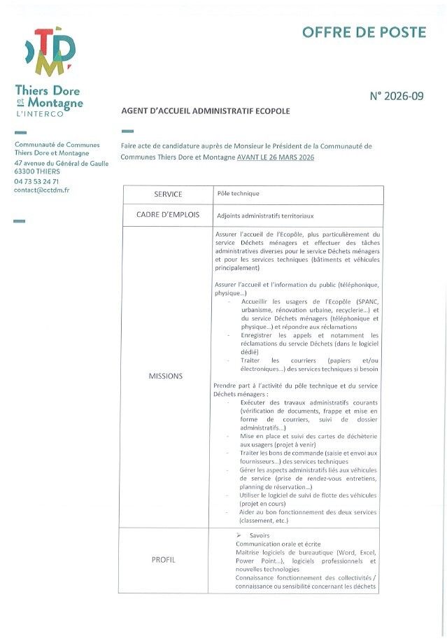 Découvrez les nouvelles offres d'emploi proposées par la communauté de communes TDM : https://www.cctdm.fr/emplois