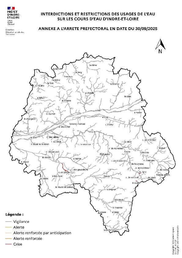 Ci-dessous l'arrêté préfectoral du du 30 septembre 2025 portant limitation ou suspension temporaire des usages de l'eau en Indre-et-Loire.