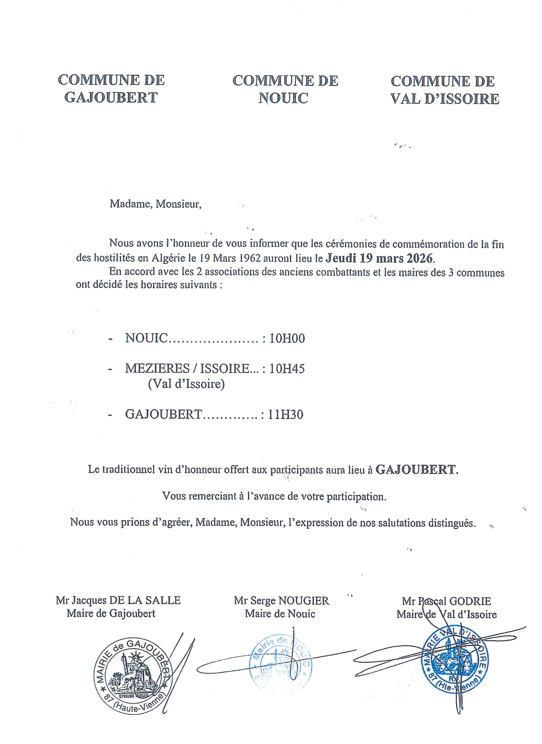 Les dates de passage sur la Commune de Nouic sont pour 2026