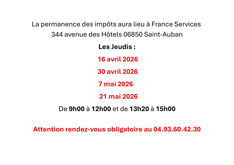 Lieu : France Services des Monts d'Azur - 344, avenue des Hôtels - 06850 Saint-Auban