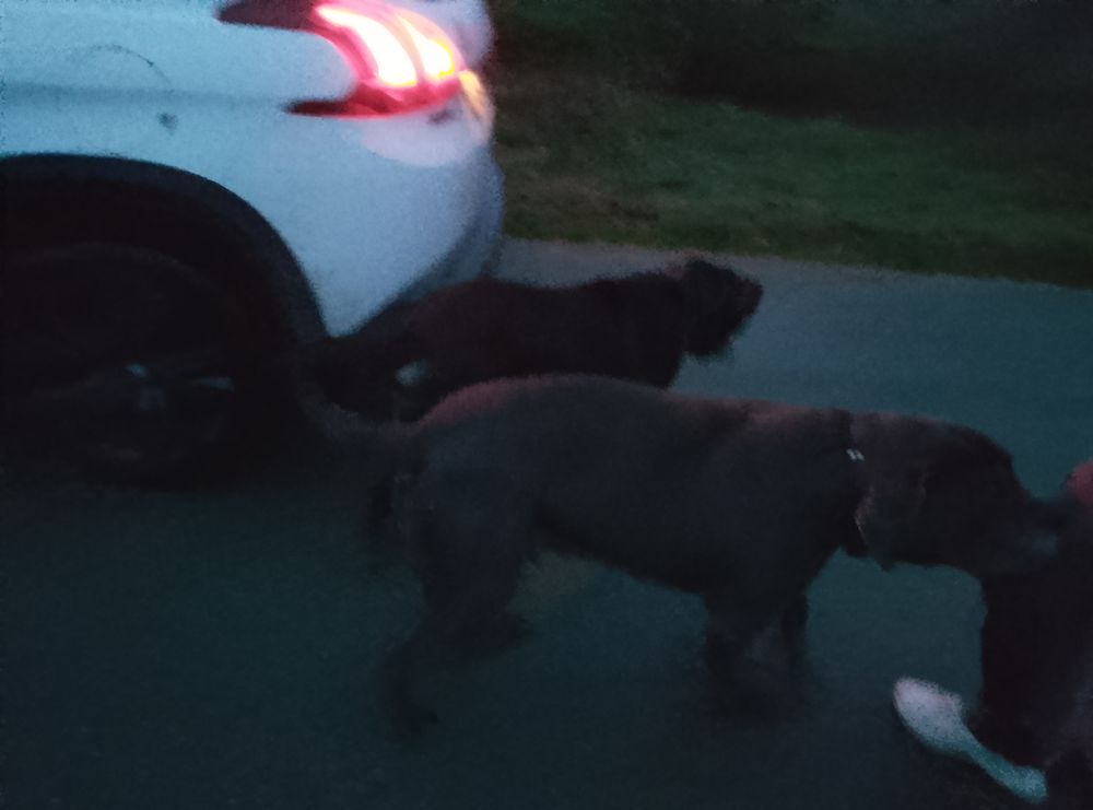 2 chiens errants de type cane corso ou boxer ont été aperçus à la sortie de Laure-Minervois direction Trèbes , celui de couleur noir a un collier simple et l'autre plus gris foncé porte un collier anti aboiement.