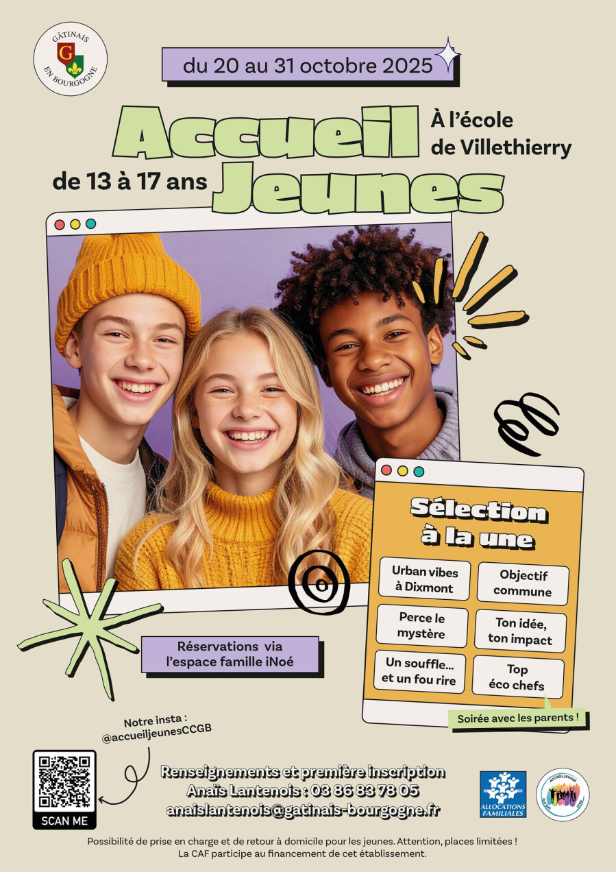 Pour la Toussaint, le centre de loisirs de la Communauté de communes du Gâtinais en Bourgogne ouvrira ses portes du 20 au 31 octobre 2025. Les activités se dérouleront à l’école de Villethierry.