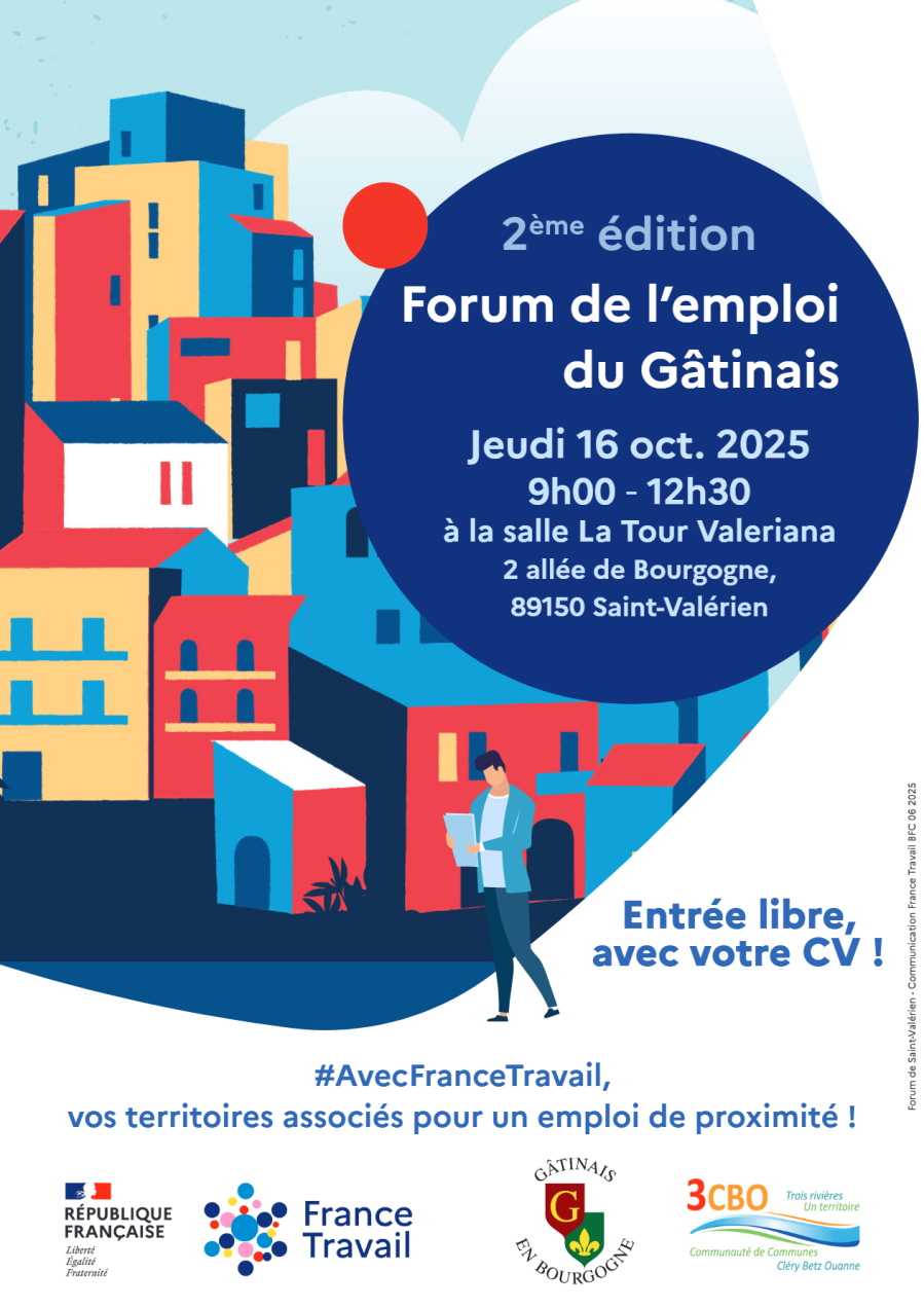 Après le succès de l’an dernier à Courtenay, le Forum emploi du Gâtinais revient pour une deuxième édition, cette fois-ci à Saint-Valérien !