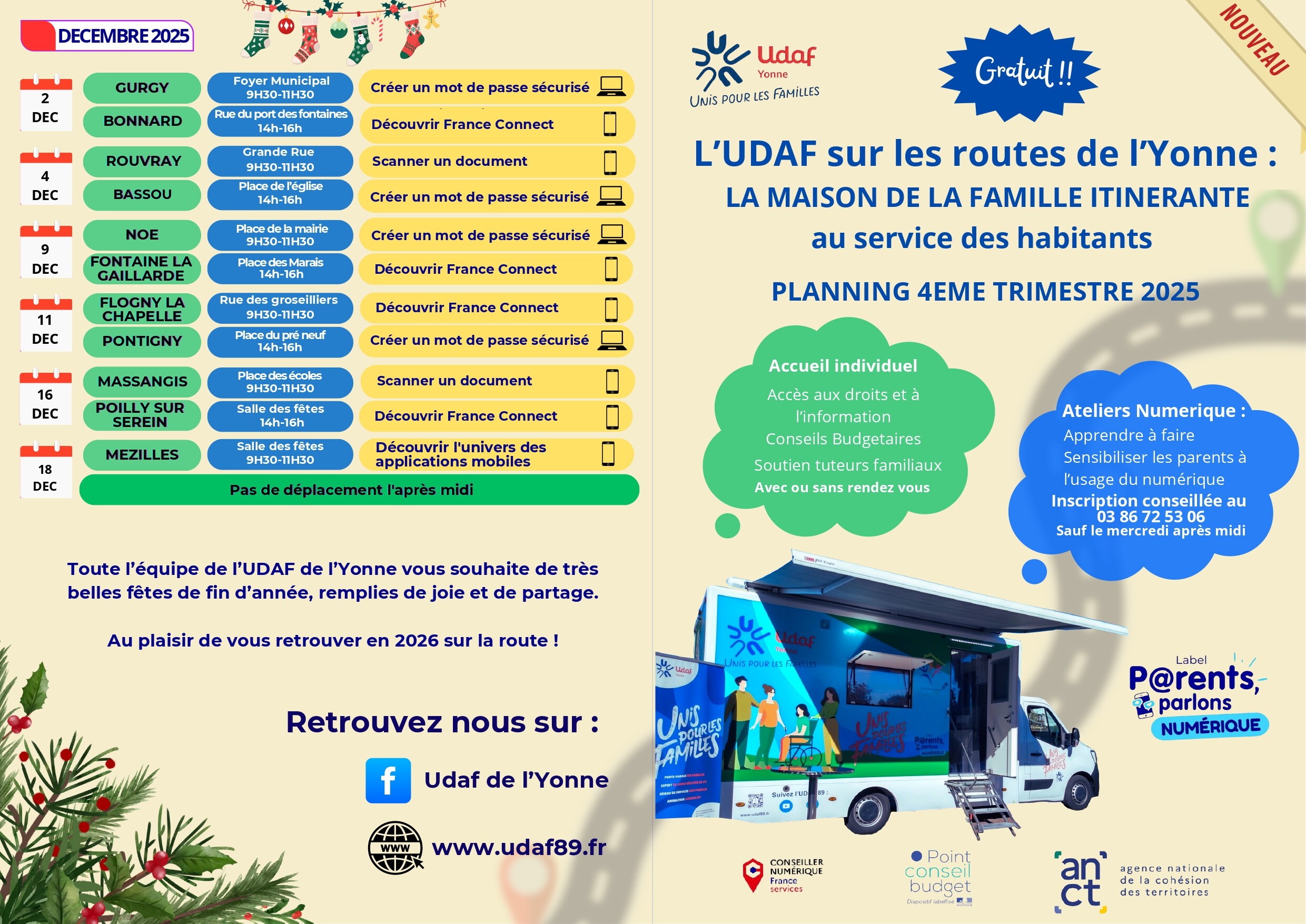 Pour rappel, la Maison de la Famille Itinérante est un service gratuit mis en place par l'UDAF de l'Yonne, pour aller vers les personnes qui rencontreraient des problématiques telles que la gestion du budget familial, les démarches administratives, l'accès aux droits, l'utilisation du numérique ou encore l'organisation d'une tutelle familiale.