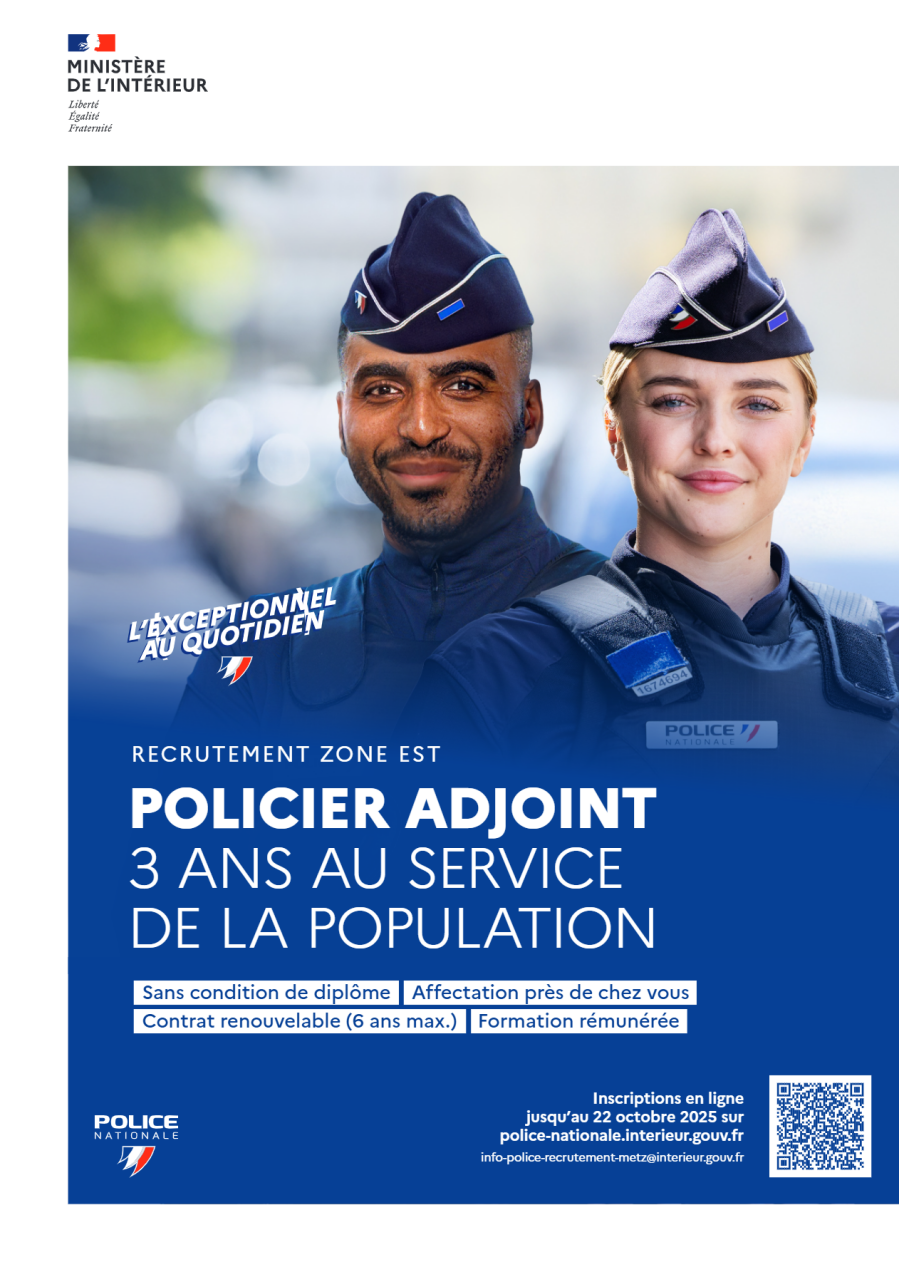 Nous vous informons de l'ouverture du concours de Policiers Adjoints de la Police Nationale pour la zone EST !