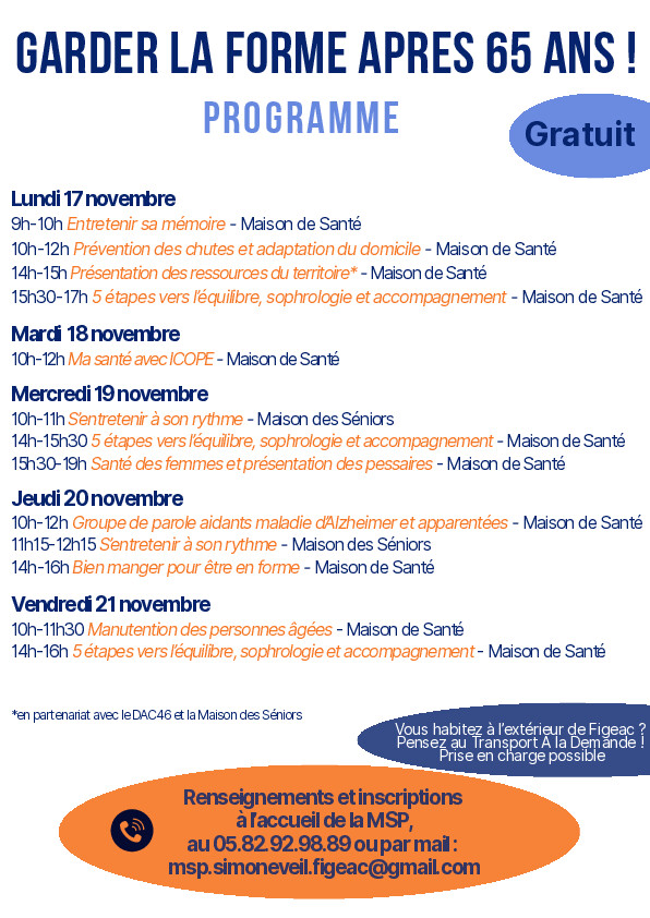 La Maison de Santé Pluridisciplinaire Simone Veil de Figeac reconduit le programme Garder la forme après 65 ans, à destination des plus de 65 ans et des aidants de personnes âgées du Grand-Figeac.