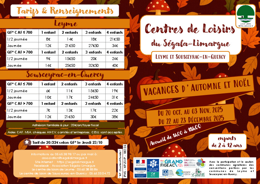 Programme des Vacances d’Automne et de Noël aux Centres de Loisirs de Leyme et de Sousceyrac-en-Quercy