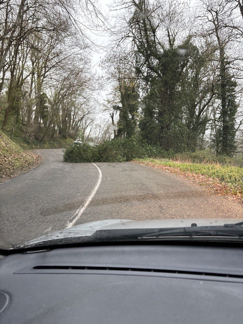 Un arbre est tombé dans les grands tournants il gêne la circulation, une intervention va avoir lieu pour le retirer de la voirie. Prudence