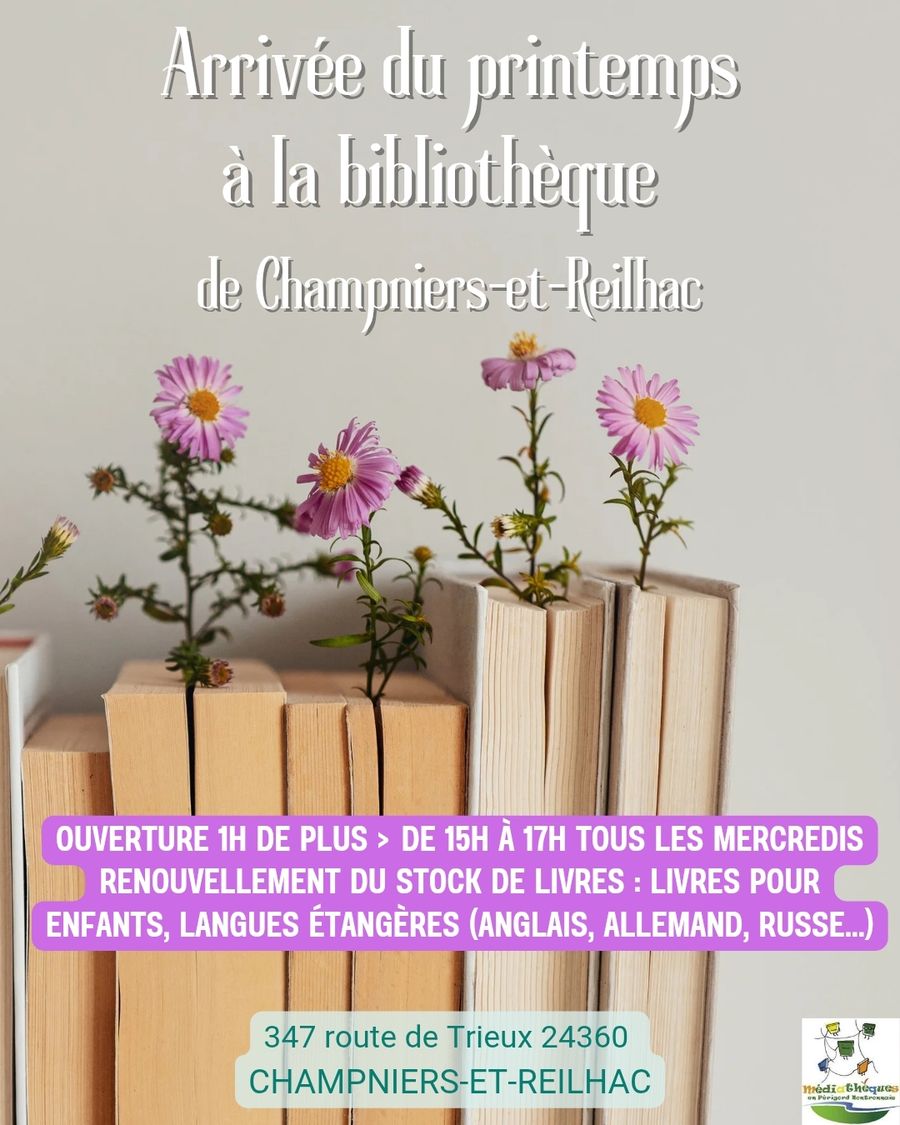 Située au 347 route de Trieux, 24360 Champniers-et-Reilhac, votre bibliothèque fait peau neuve avec le renouvellement de nombreux ouvrages.