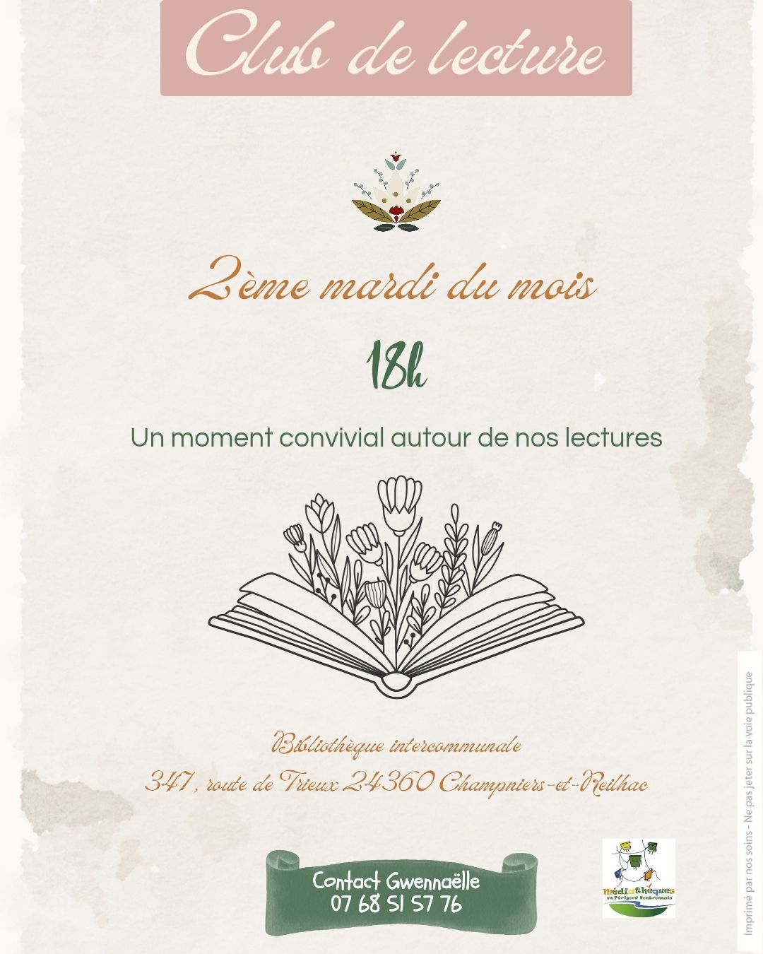 Vous aimez lire et partager vos impressions ? Rejoignez notre club lecture qui se réunit le 2ᵉ mardi de chaque mois à la Maison des Associations de Champniers et Reilhac.