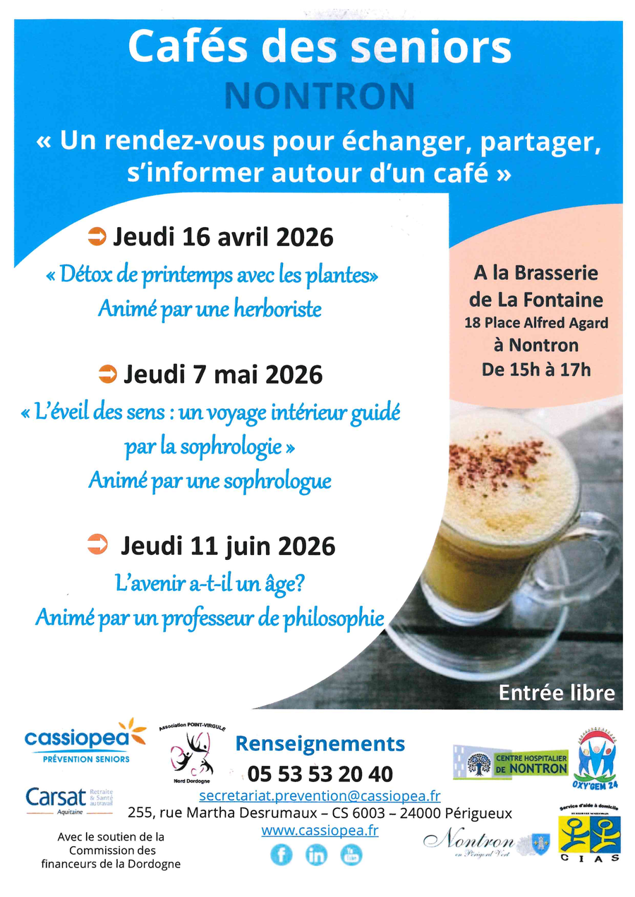 Organisé par Cassiopea prévention senior avec le soutien de l'association Point-Virgule, de la Carsat, de la commission des financeurs de la Dordogne et en collaboration avec le Cias, le Centre Hospitalier, le Gem et la Mairie de Nontron