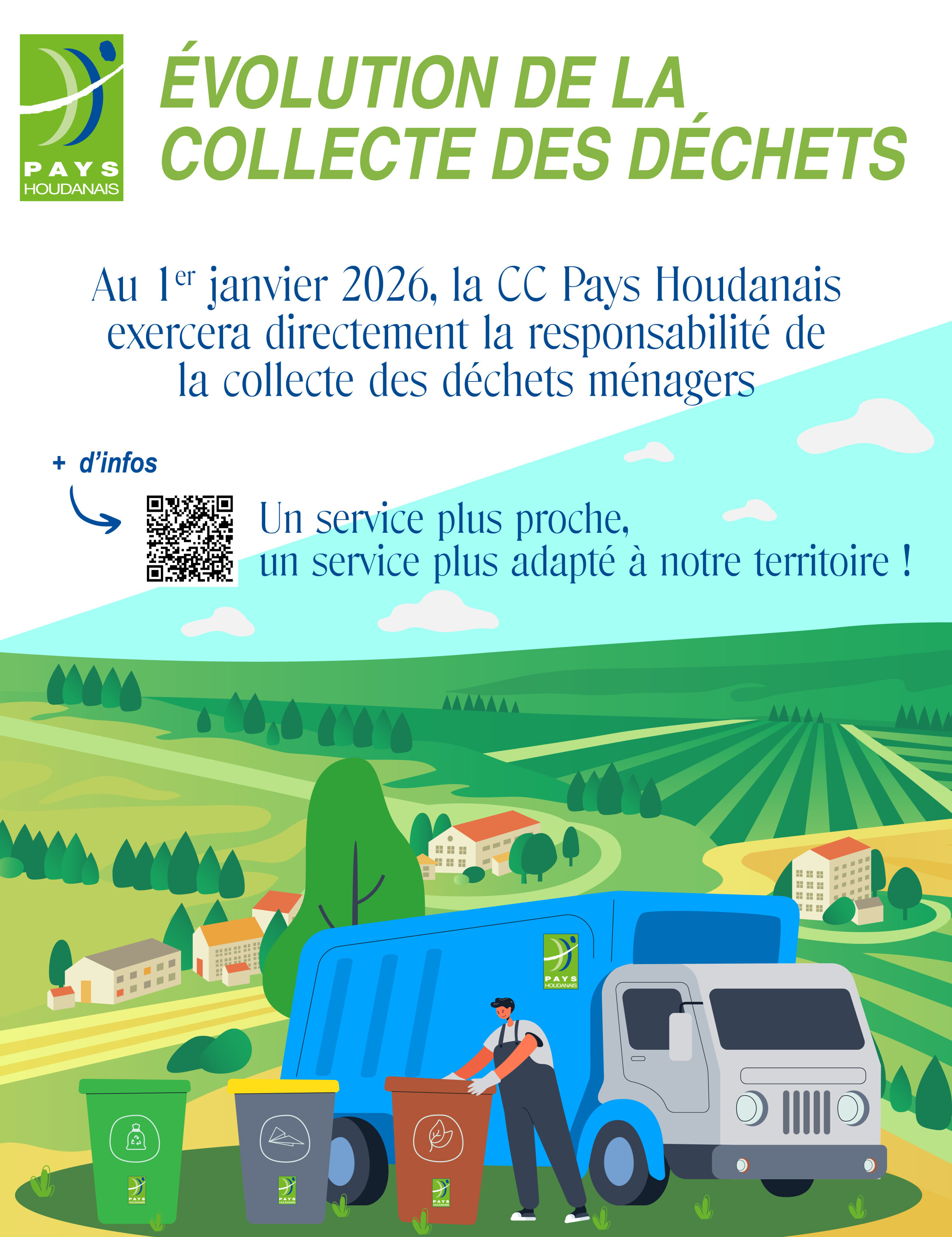 Dans le cadre de la dissolution du SIEED, nous vous informons que le Pays Houdanais reprendra, à compter du 1er janvier 2026, la compétence de collecte et d’évacuation des déchets ménagers pour l’ensemble des communes du territoire.