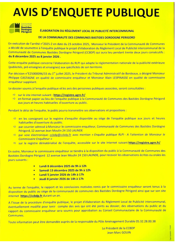 Notre Communauté des Communes (CCBDP) met à enquête publique le Règlement Local de Publicité Intercommunal