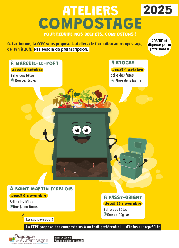 La Communauté de Communes des Paysages de la Champagne propose des ateliers de formation au compostage, ouverts à tous les habitants du territoire afin de vous accompagner dans le cadre de sa politique de réduction des déchets.