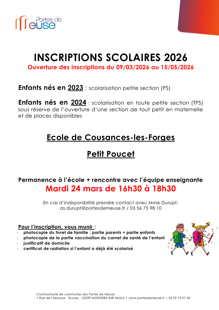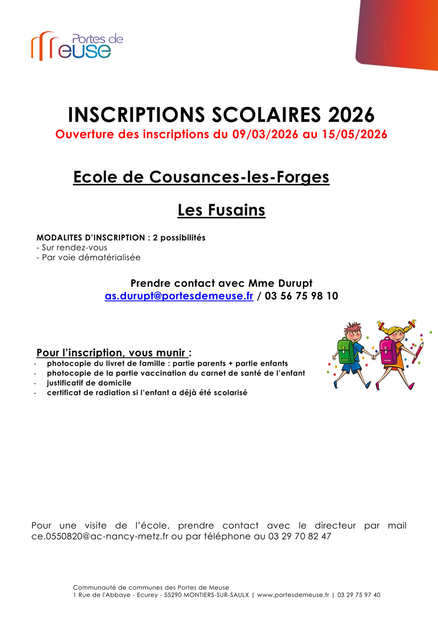 L'ouverture des inscriptions des enfants :