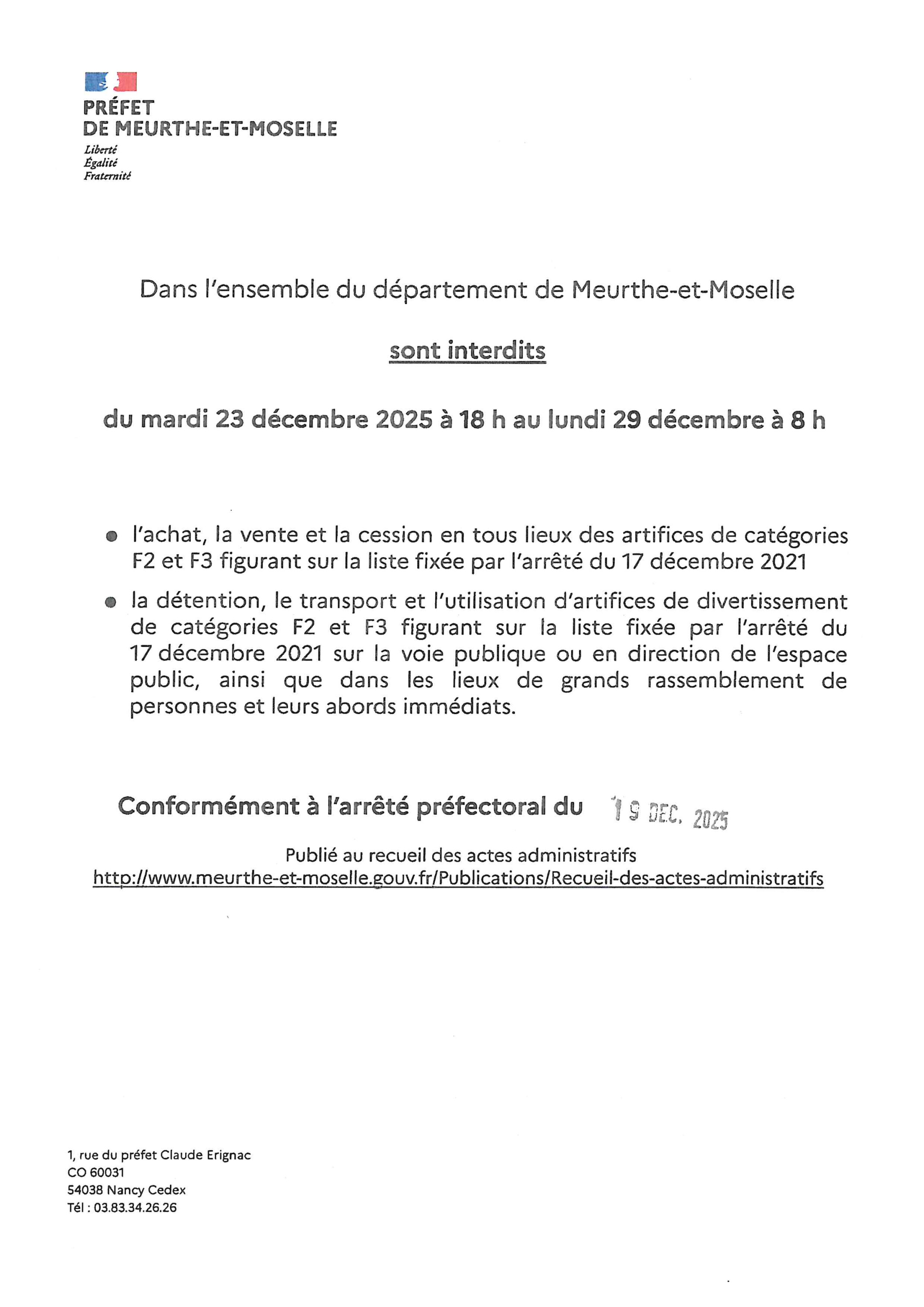 Arrêté préfectoral par lequel le préfet de Meurthe-et-Moselle réglemente, de manière temporaire pour la période de Noël,