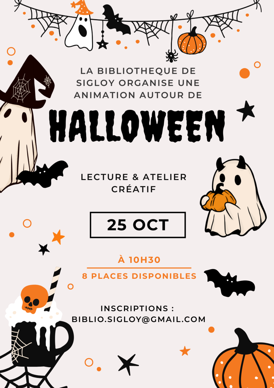 La bibliothèque de Sigloy vous propose de participer à un atelier créatif suivi d'une lecture sur le thème d'Halloween ;