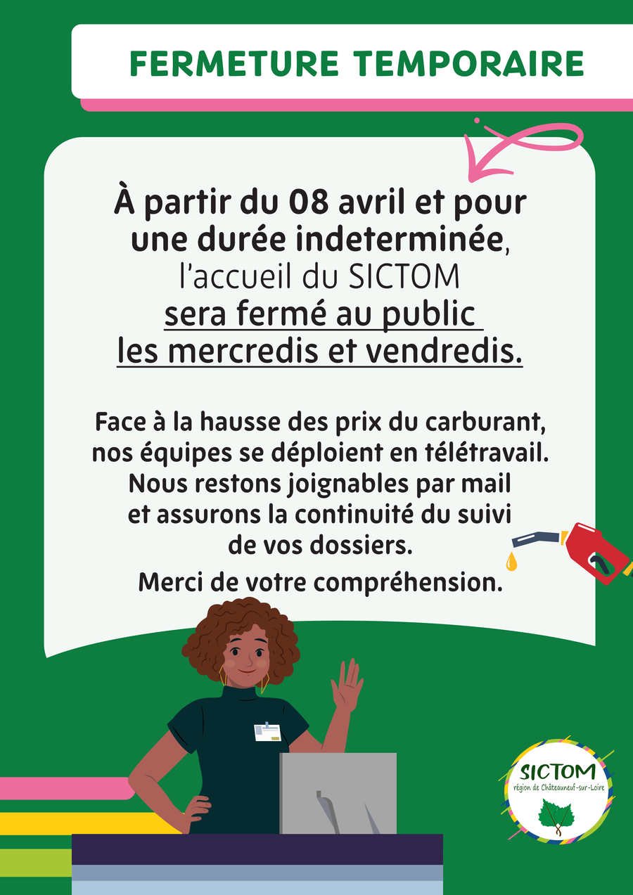 À partir du 8 avril, l’accueil physique du SICTOM s’adapte.