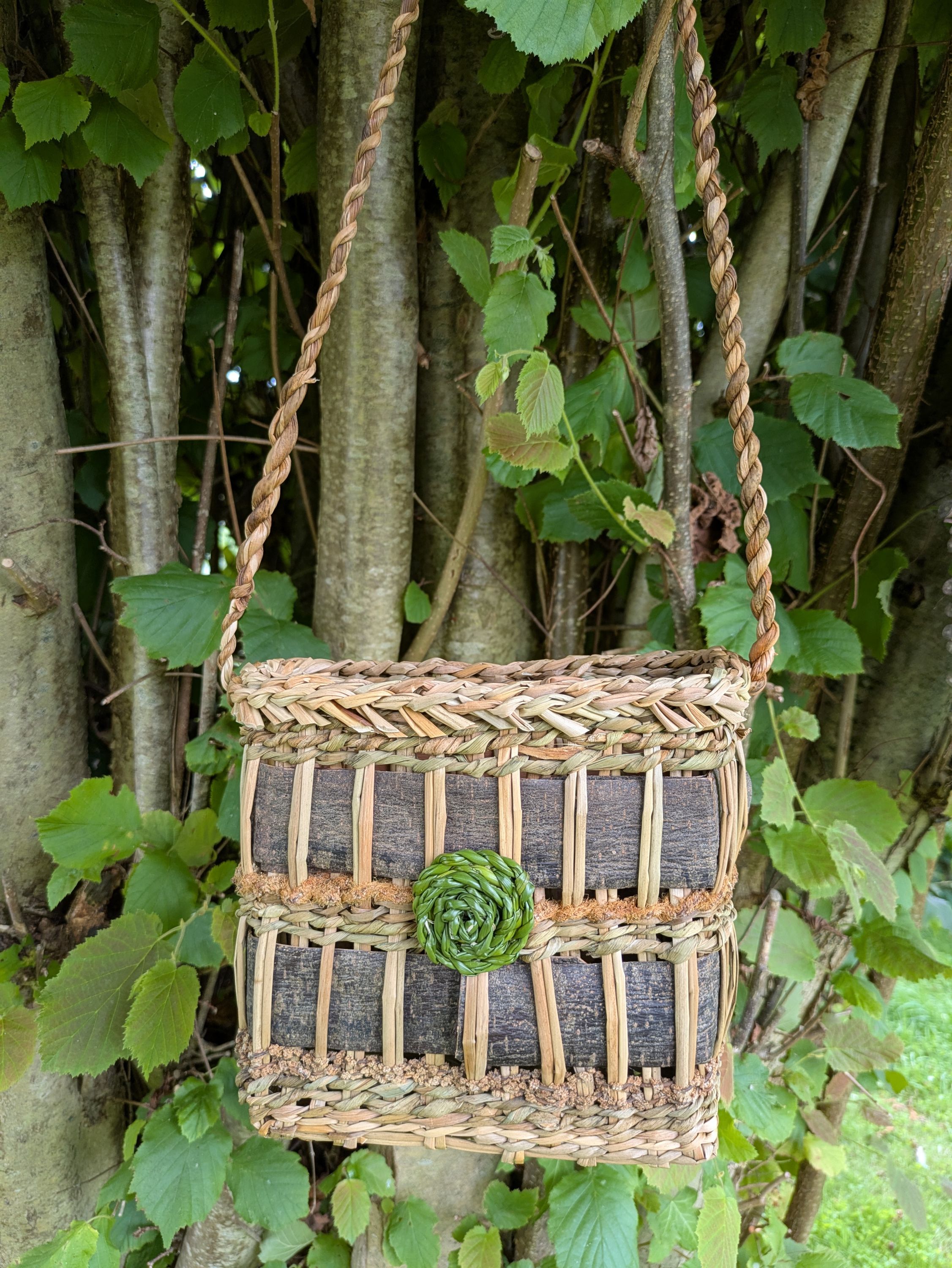 Au programme : Préparation des écorces de châtaignier façon "cuir végétal" et réalisation, plusieurs modèles au choix , d'une sacoche en bandoulière, pot à crayons ou autre contenant en diverses herbes séchées (jonc, massette...) .