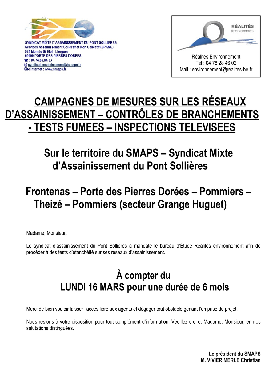 CAMPAGNES DE MESURES SUR LES RÉSEAUX D’ASSAINISSEMENT CONTRÔLES DE BRANCHEMENTS
