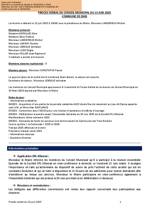 Ce 1er septembre début la période électorale. Les forces vives d'OHIS peuvent se regrouper pour former au minimum une liste de 11 membres pour former le futur Conseil Municipal. Ne laissez pas d'autres de décider à votre place.