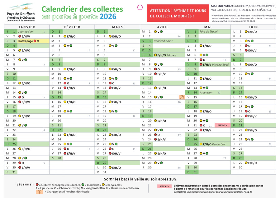 Après le passage des sacs aux bacs jaunes, le rythme d'enlèvement des déchets est modifié à compter du 1er janvier 2026 :