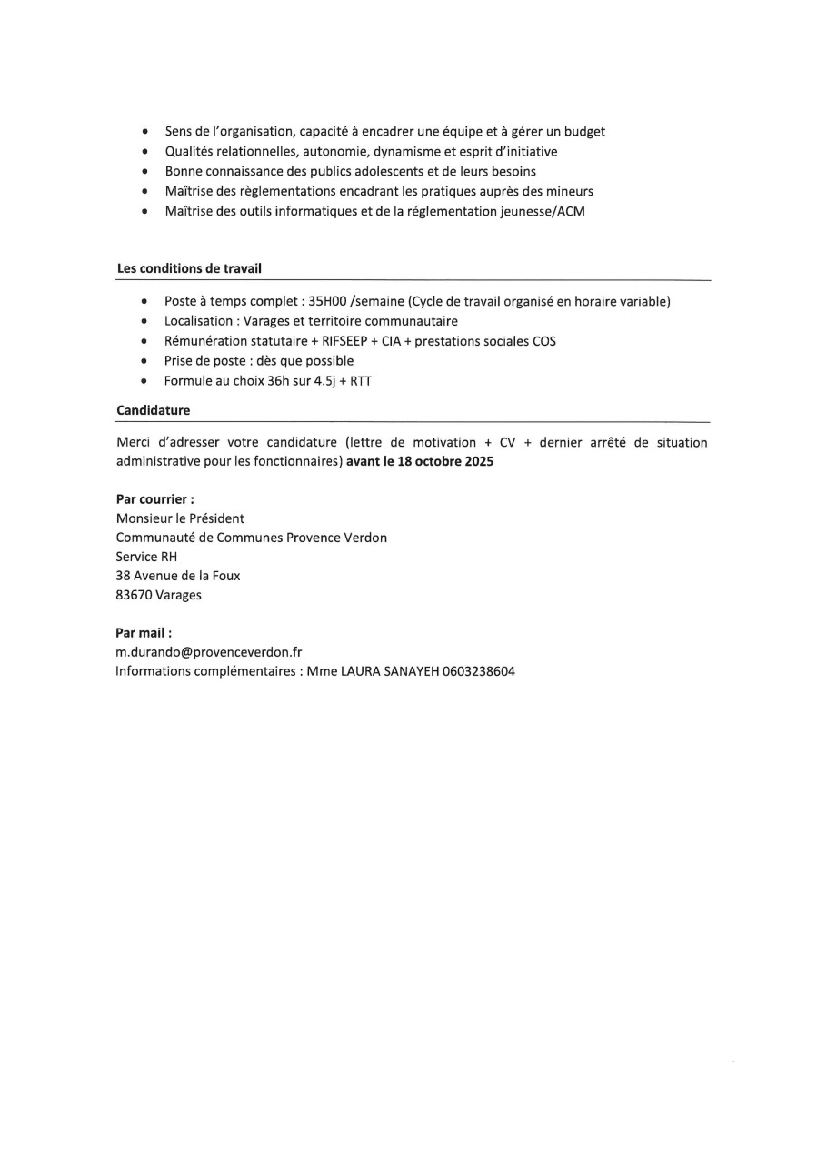 🔹 Responsable adjoint du service Jeunesse (H/F) En savoir plus