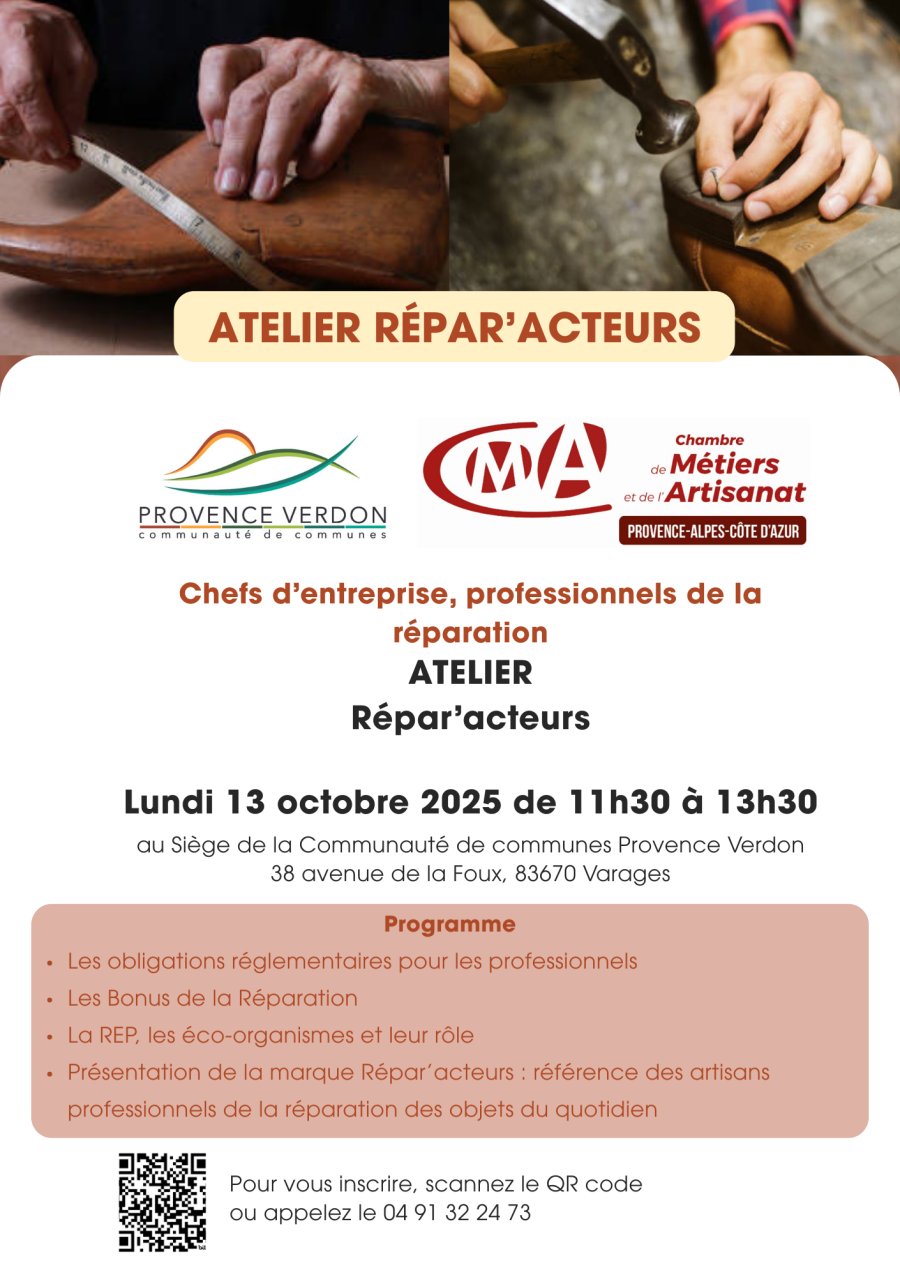 Dans le cadre de son Programme Local de Prévention des Déchets Ménagers et Assimilés (PLPDMA), la CCPV organise un évènement, en coordination avec la Chambre des métiers à destination des professionnels de la réparation du territoire :