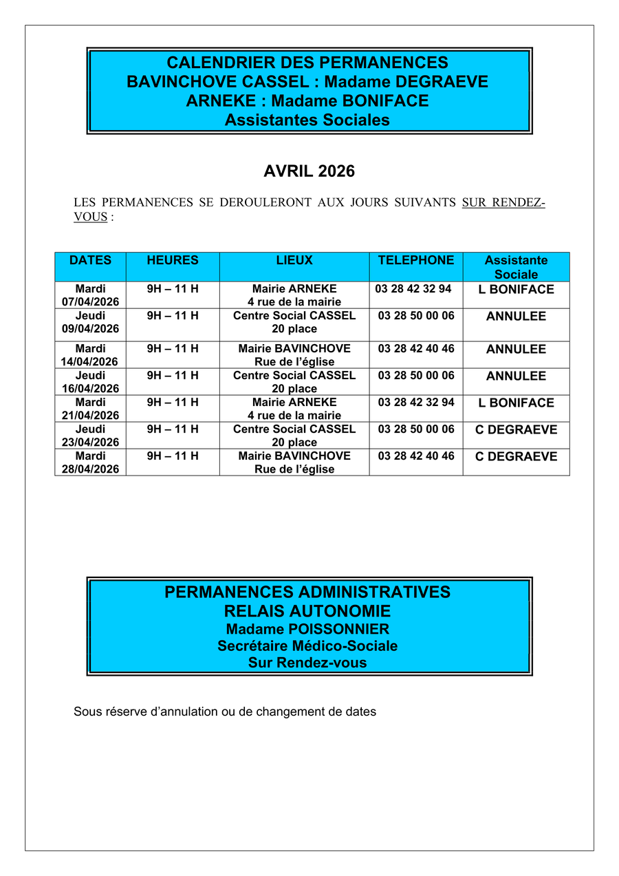· Mardi 17 mars de 9h45 à 12h15 à la salle retrait local livre de Winnezeele : permanence médiation santé