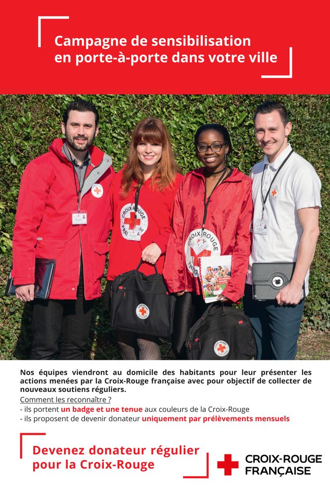 Parfaitement identifiables grâce à un badge et une tenue aux couleurs de la Croix-Rouge, les équipes passent en porte-à-porte.