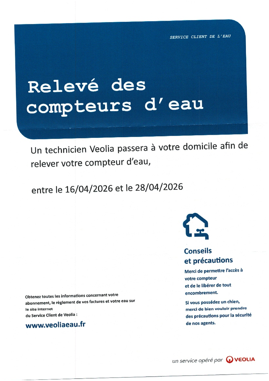 Veuillez trouver une information de Véolia. Ce n'est pas obligatoire d'être présent(e) à votre domicile.