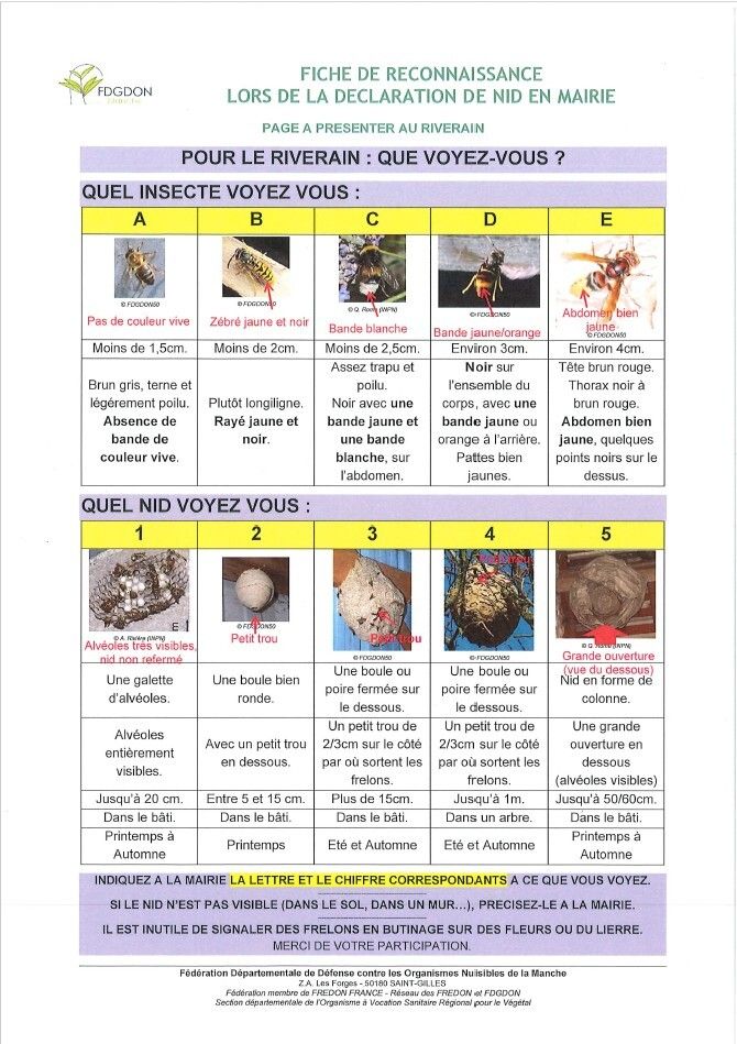 Merci de consulter la fiche de reconnaissance avant d'appeler la mairie pour la destruction des nids