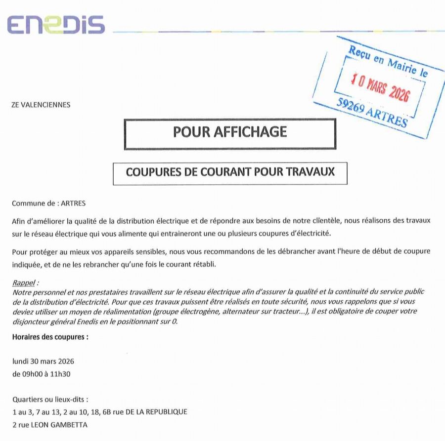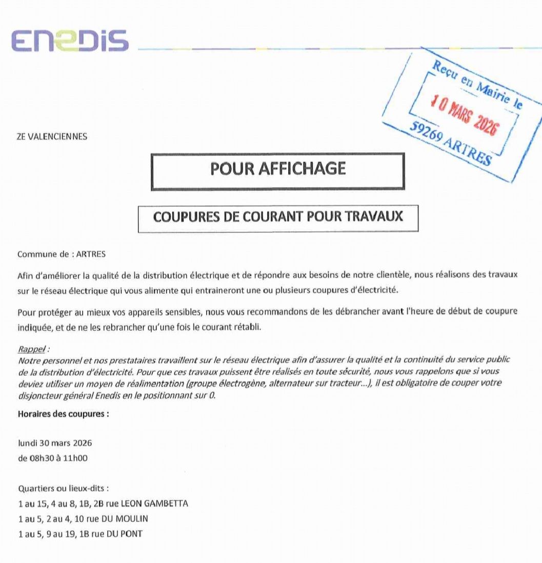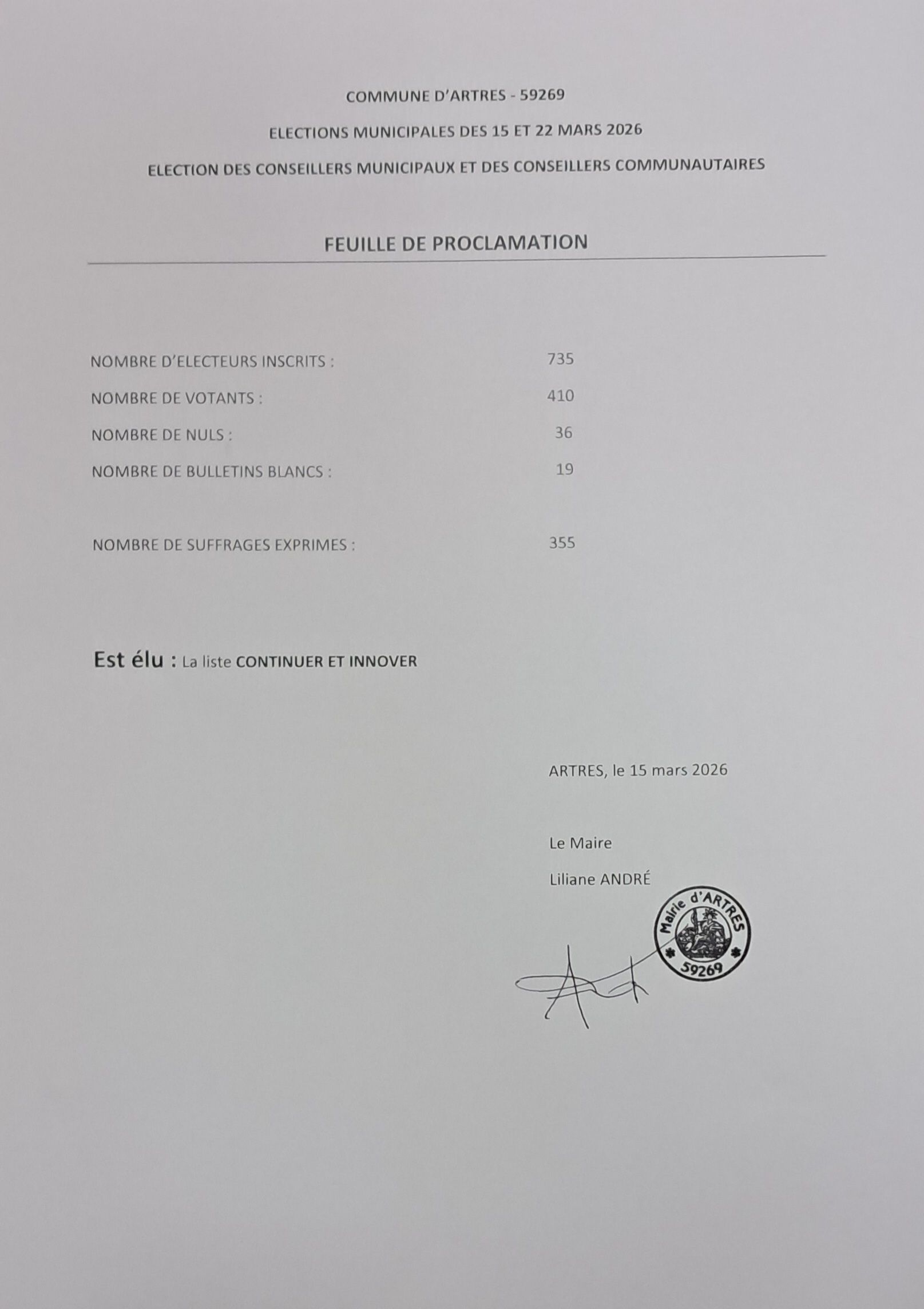 La commune d’Artres vous informe que la séance du conseil municipal consacrée à :