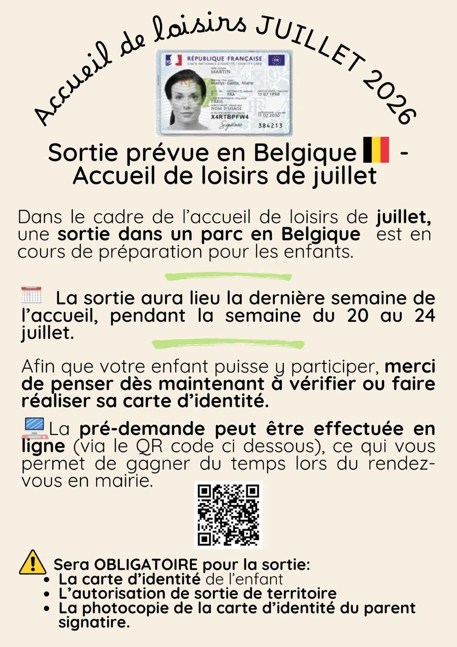 Dans le cadre de l’accueil de loisirs de juillet, une sortie exceptionnelle dans un parc en Belgique est actuellement en préparation pour les enfants !