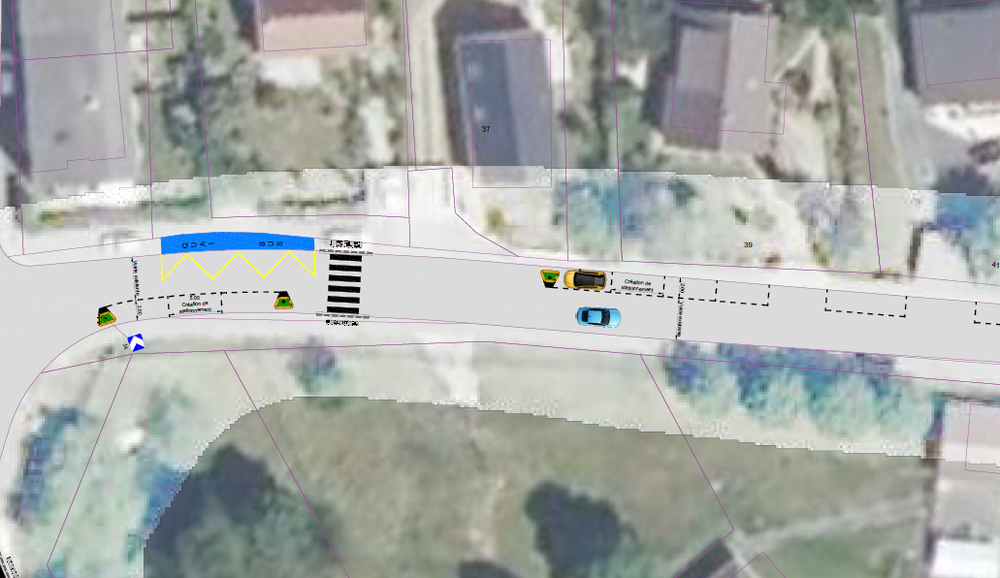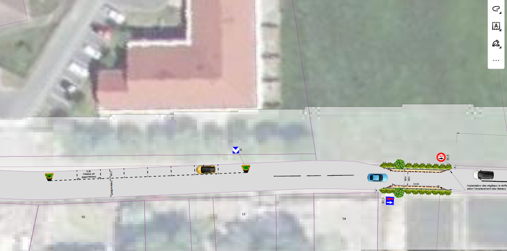 L'objectif de ces travaux est de sécuriser l'arrêt de bus, de matérialiser le stationnement, de créer des entrées de bourg en écluse et de limiter la vitesse dans nos rues. Les places de stationnement peintes rue de la Chesnaie vont être protégées par des îlots et des panneaux.
