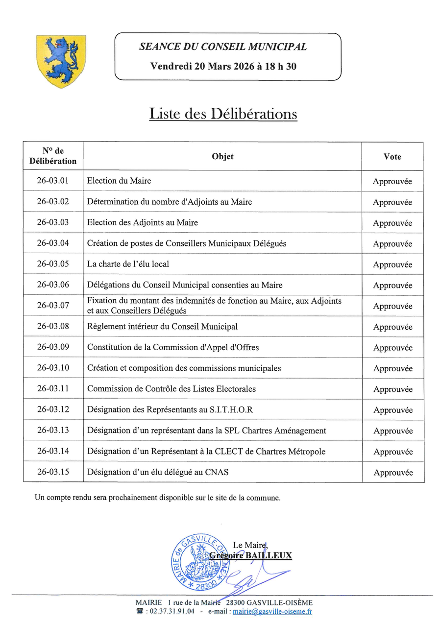 Le compte-rendu sera prochainement disponible sur le site internet de la commune : ICI