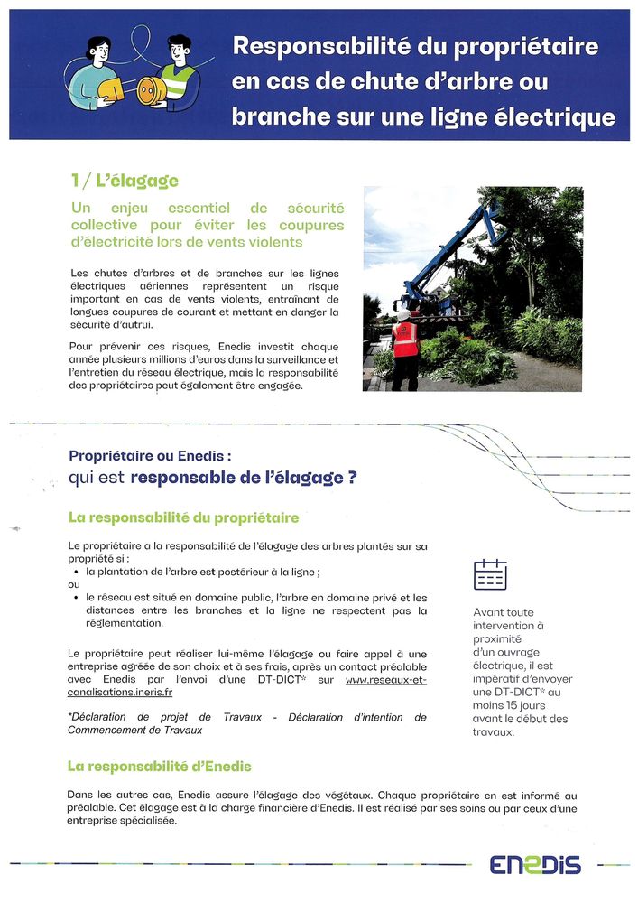 Un employé de la société GRDE, Monsieur YUMRU, est venu hier en mairie nous informer que les travaux d'élagage à proximité immédiate des lignes hautes tensions seront réalisés par ses soins. C'est une bonne nouvelle car les courriers reçus il y a quelques mois de la part d'ENEDIS nous demandant de faire le nécessaire ont provoqué beaucoup d'inquiétude.
